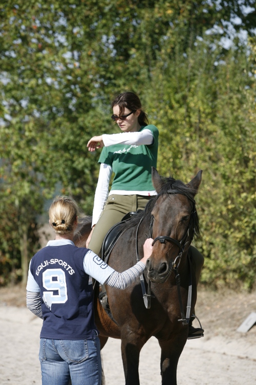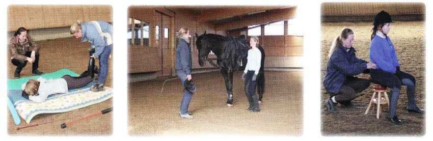 Pferdegerechtes Reiten kann man lernen, in dem man sein Körpergefühl und das Gefühl für das Pferd schult. Die angewandte Bewegungslehrer nach Eckart Meyners soll dazu führen, dass der Reiter sich zuerst auf die Bewegung des Pferdes einlässt, um dann gezielt aktiv auf das Pferd einzuwirken, ohne den Bewegungsfluss zu stören. Wenn der Reiter seine eigenen Bewegungen und die des Pferdes als leicht empfindet, ist die größte Harmonie erreicht. Nur so hat das Pferd die Möglichkeit, sich entsprechend seiner natürlichen Fähigkeiten zu bewegen und zu entwickeln. Durch diese jetzt anatomische Funktionalität präsentiert sich das Reiter-Pferdepaar als absolut harmonische Einheit um muskulären Gleichgewicht. |